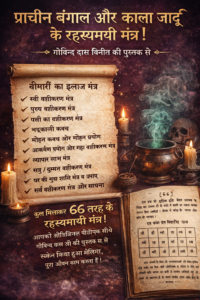 इसमें प्राचीन बंगाल और कला जादू के बारे में बताया गया है जिसका कुछ इस्लामिक मंत्र भी है ये गोविन्द दस विनीत की किताब से है जो की हमारी जिसमे बीमारी का इलाज किसी भी स्त्री वशीकरण मंत्र, पुरुष वशीकरण मंत्र, पत्नी द्वारा पति पर वशीकरण मंत्र, अपना खोया हुआ प्यार, प्यार Or धनप्राप्ति या धनप्राप्त,भद्रकाली कवच, शिव मंत्र, मोहन कवच, मोहन प्रयोग, आकर्षद प्रयोग,महा वशीकरण मंत्र, व्यपार लाभ मंत्र, प्रेमिका वशीकरण, प्रेम स्थिर रखने का मंत्र, वशीकरण प्रयोग, सत्रु दुसमन वशीकरण मंत्र, राज वशीकरण, व्यापारी वशीकरण, सर्व वशीकरण, घर की सुख शांति मंत्र उपाए, कुल मिलकर ६६ तरह का मंत्र है इसमें जो प्राचीन काल से लोग सही तरीके से इस्तमाल करते हुए आये है इसका आपको ओरिजिनल पीडीऍफ़ मिलेगा जो किताब से स्कैन किया हुआ है जैसे इस इमेज में है और ये आजीवन काम करती है जो आपको किसी इंटरनेट या कही सोर्स से नहीं मिलेगा /